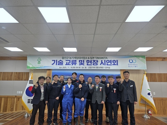 울진군(군수 손병복) 농기계임대사업소는 지난 11월 18일 일본 농기계 제조사 타카키타(TAKAKITA) 엔지니어와 국내 협력 업체 관계자 등 총 7명이 방문한 가운데 기술교류 및 장비 시연회를 열었다.