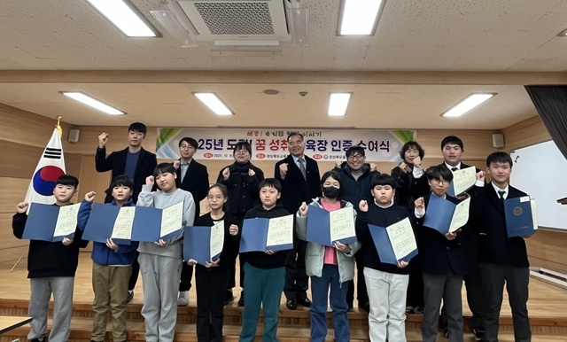 경상북도울진교육지원청(교육장 이기협)은 지난 12월 9일(화) 경상북도교육청 울진도서관에서‘2025 도전! 꿈 성취 교육장 인증 수여식’을 개최하여 울진의 문화유산과 자연을 탐방하며 활동을 완주한 학생 27명에게 인증패를 수여했다.