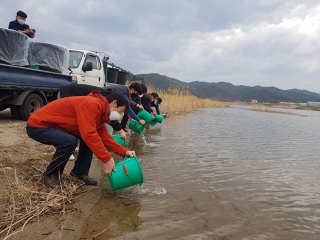 울진군은 30일 울진군낚시협회 회원들과 함께 청정1급수 하천인 근남면 왕피천(수산보, 구산1교 일원)에서 전장 5cm이상 크기의 어린 은어 13만 7,000마리를 방류했다.