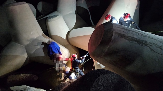 울진해양경찰서(서장 장윤석)은 21일 밤 11시 46분경 울진군 후포항 방파제에서 야간 낚시를 하려다가 TTP 사이로 추락한 낚시객 2명(남, 44세/38세)을 구조하였다고 밝혔다.