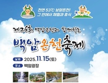 울진군(군수 손병복)은 11월 15일 울진군 온정면 백암광장 일원에서 ‘제26회 백암온천축제’를 개최한다. 이번 축제는 지역 대표 온천 관광지인 백암온천의 명성을 되살리고, 가을 정취속에서 전통문화와 지역 특산품을 함께 즐길 수 있는 힐링형 관광축제로 마련됐다. 백암온천축제는 유황온천의 따뜻한 향기와 함께 풍성한 공연과 체험 프로그램으로 진행된다. 메인 전시로는 ‘백암온천의 역사’가 전시되고 온천수로 삶은 계란도 시식할 수 있다. 그리고 온천수로 만든 화장품으로 마사지를 경험할 수 있도록 준비했다. 또한 온정 지역 문화 체험을 위하여 양떡음떡마을에서 준비한 떡매치기 체험과 시식이 함께 이루어질 예정이다. 더불어 야생화 화분 만들기와 곤충 만들기 체험 등 자연의 깊은 정취를 느낄 수 있는 체험을 준비하여 관광객을 기다릴 예정이다. 무대에서는 쉴새없이 각종 공연이 이어질 예정인데 중간중간 관객과 함께하는 이벤트도 준비되어 있어 참여의 재미를 맛볼 수 있다. 이 외에도 숨마켓에서는 푸드존을 준비하여 바비큐, 파전과 같은 먹거리를 제공하고 특산품 판매장도 함께 열려 구경하는 재미를 더 할 예정이다. 축제가 열리는 온정 백암광장은 최근 개통된 포항-영덕 고속도로를 이