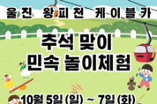 울진군(군수 손병복)은 추석 연휴를 맞아 울진 왕피천공원에서 다양한 체험과 이벤트를 마련해 귀성객과 관광객들에게 즐길 거리를 제공한다. 이번 행사는 추석 연휴인 오는 10월 5일부터 10월 7일까지 케이블카와 아쿠아리움 사이 광장에서 윷놀이, 투호, 널뛰기 등 전통 민속놀이 체험을 직접 즐길 수 있다. 또한, 울진아쿠아리움 해양생물 생태설명회는 10월 3일부터 10월 9일까지 매일 4회(오전 10시30분, 오후 2시, 2시 30분, 3시) 진행되며 수달, 물범 등 다양한 해양생물 대한 흥미로운 이야기를 관람객들에게 들려줄 예정이다. 특히, 왕피천공원 제기왕 선발 이벤트는 왕피천공원을 방문하는 이용객들에게 소중한 추억을 제공하기 위해 10월 6일 오후 2시부터 오후 3시 30분까지 진행하며 제기차기를 많이 한 고객에게 다양한 울진 특산품이 증정된다. 참가 자격은 공원 내 전시관 등 입장권 또는 영수증을 소지한 이용객에게 주어진다. 손병복 울진군수는 “추석 연휴 동안 고향을 찾은 귀성객과 울진을 방문하는 관광객들이 왕피천공원에서 즐겁고 의미 있는 시간을 보내길 바란다”며 “다양한 즐길 거리와 이벤트를 통해 추석 연휴 왕피천공원에서 소중한 추억을 만들어 가시길 기