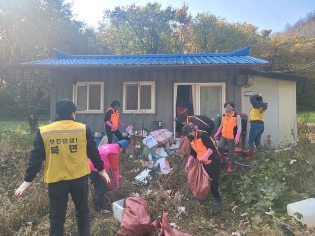 울진군 북면(면장 장경희) 우리동네 재능부자들이 지난 11월 5일 북면 지역의 한 독거노인 집에 방문하여 주거청결 봉사활동을 전개했다.