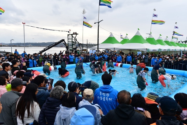 이날 축제장에는 비가내리는 궂은 날씨에도 이른 아침부터 방문객이 몰려 인산인해를 이뤘다. 맨손활어잡기체험, 물회퍼포먼스, 수산물 무료시식, 죽변항 화합올림픽 등 다양한 프로그램이 마련되어 관광객들의 큰 호응을 얻었다.