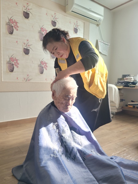 소곡리에 거주하는 한 어르신은 “20년이 넘는 시간 와상으로 지내면서 미용실도 큰 맘먹어야 갈 수 있는데 이렇게 집에 직접 와서 미용봉사를 해주니 너무 감사하다”라고 고마움을 전하였다.