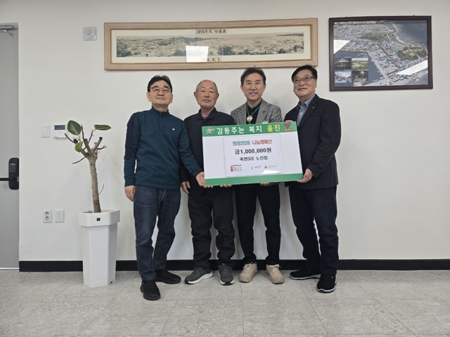 울진군 죽변3리 노인회(회장 김용웅)는 지난 12월 26일 죽변면사무소를 방문해 지역 내 어려운 이웃을 돕기 위한 성금 100만원을 전달하며, 따뜻한 온정을 나눴다.