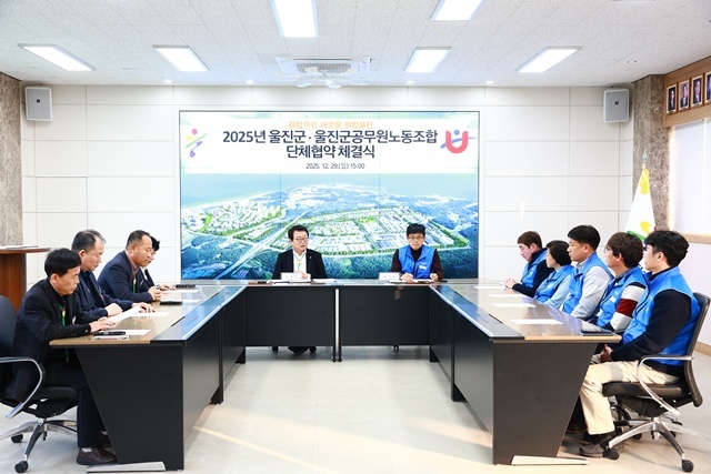 울진군은 지난 12월 29일 울진군 공무원 노동조합과 2025년 단체협약을 체결하고 공무원의 근무여건 개선과 복지증진을 위한 노사 상생의 기반을 마련했다.