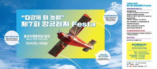 울진군(군수 손병복)은 항공레저스포츠에 대한 이해증진 및 저변확대를 위해 오는 24일부터 25일까지 울진비행교육훈련원과 구산해수욕장에서 제7회 항공레저 FESTA를 개최한다.