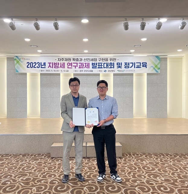 이번 지방세 연구발표대회에서 울진군 근남면 김형경 주무관은 ‘법인의 사치성 자동차 중과세 적용’이라는 주제를 발표하여 최우수상을 수상하였다. 법인명의 자동차에 대해 연두색 번호판으로 변경 예정 등 규제조성 분위기에 맞춰 배기량 3,500cc 이상이며 시가표준액 1억 5천만원 이상인 고급 자동차에 취득세 및 자동차세를 중과세하는 방안을 제안하였다.