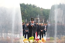 울진군 근남면(면장 김상덕)은 지난 11월 20일 면사무소 2층 회의실에서 관내 기관단체장과 노인회장, 이장 및 직원 등 70여명이 참여한 가운데 무후제를 봉행했다. 근남면 무후제(無後祭)는 자신의 재산을 국가와 지방자치단체에 기증하고, 후손없이 별세한 고인 4분을 추모하는 제사로, 매년 음력 10월 1일 이후에 택일하여 실시해 오고 있다. 이날 김상덕 근남면장이 초헌관, 진대좌 노인회장이 아헌관, 박수근 이장협의회장이 종헌관을 맡아서 제례를 봉행했으며, 근남면 새마을 부녀회(회장 이만숙)에서 제물 음식을 정성스럽게 준비하였으며 제례를 마치고 참석자들은 제사음식을 나눠 먹으며 고인의 은덕을 기렸다. 김상덕 근남면장은 “오늘 참석해 주신 모든 분과 제물준비에 수고하신 새마을부녀회원들에게 감사드린다”며 “고인에 대한 추모의 의미를 되새기고 나아가 근남면의 화합과 발전을 기원했다”라고 전했다. 최태하 기자
