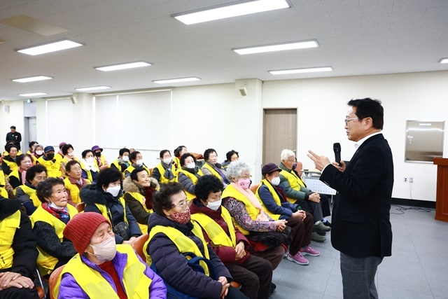 이번 발대식은 올해 노인일자리사업의 시작을 알리고 참여 어르신들을 격려하기 위해 마련됐으며 경북교통문화연수원(강사 이정임)에서 시청각 자료를 활용해 어르신 교통사고 사례를 중심으로 눈높이에 맞춘 교통안전교육을 진행했다. 교육에 참석한 어르신들은 "안전은 행복입니다"라는 슬로건을 함께 외치며 적극적인 태도로 교육에 참여하는 등 큰 호응을 보였다.