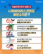 울진군은 치명률 최대 75%의 니파바이러스 감염증을 우려해 설 연휴 기간 해외를 방문하는 주민들을 대상으로 예방수칙 준수를 당부했다. 최근 인도 보건당국의 공식발표에 따르면 인도 서벵골주에서 2명이 니파바이러스에 감염됐으며 이들과 관련된 접촉자 196명 중 추가 확진자 또는 타 국가로의 전파 사례는 현재까지 보고 되지 않았다. 니파바이러스는 40~75%의 높은 치명률을 가진 바이러스로 사람 간의 전파가 가능하다. 이를 예방할 백신이나 치료제가 없어 각별한 주의가 요구되며 질병관리청은 지난해 9월 니파바이러스를 제1급 법정 감염병으로 지정해 전수 감시체계 속 철저하게 동향을 파악하고 있다. 니파바이러스의 주 감염 경로로는 감염된 동물, 특히 과일박쥐나 돼지 등과의 직접 접촉, 오염된 식품의 섭취, 환자와의 밀접한 체액 접촉 등이 있다. 대표적인 오염 식품으로는 생대추야자수액과 오염된 과일이 있는데, 니파바이러스는 상온 환경에서 과일이나 과일즙에 최대 3일 간 생존이 가능하며 22℃에서 보관된 대추야자수 수액에서 최소 7일간의 전염성을 유지하는 것으로 알려져 있어 주의가 필요하다. 이 외에도 오염된 생고기와 덜 익힌 고기를 섭취할 경우 감염 위험이 있다. 니파바