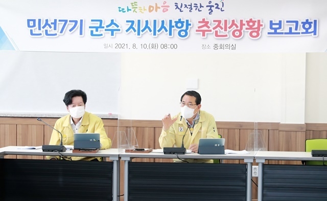 울진군(군수 전찬걸)은 지난 10일 군청 중회의실에서 '민선7기 군수 지시사항 추진상황 보고회'를 개최했다.