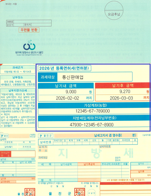 군은 이번 등록면허세 고지서는 고령층과 시각 취약계층을 배려하기 위해 글자 크기를 대폭 키운 ‘큰글씨 지방세 고지서’를 제작·발송했다. 큰글씨 고지서는 기존 고지서보다 글씨 크기를 확대해 과세대상, 세액, 납부기한, 가상계좌 등 핵심 정보를 한눈에 확인할 수 있도록 개선한 것이 특징이다.