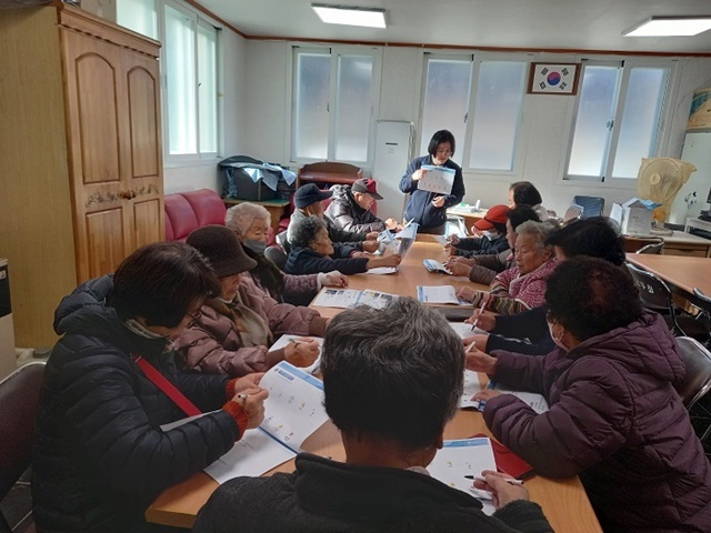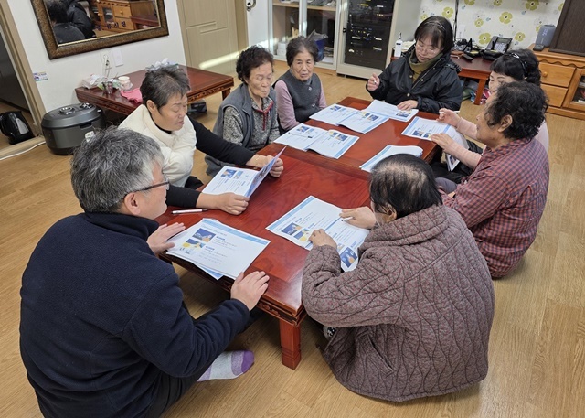 이번 교육은 매서운 한파로 인해 담당자가 직접 각 마을 경로당을 방문해 진행됐으며, 노인일자리 활동 현장에서 발생할 수 있는 각종 안전사고를 사전에 예방하는 데 중점을 두고 실시됐다. 특히 상황에 맞는 다양한 그림으로 구성된 안전교육 워크북을 활용해 고령의 참여자들도 쉽고 이해하기 편하도록 교육 효과를 높였다.
