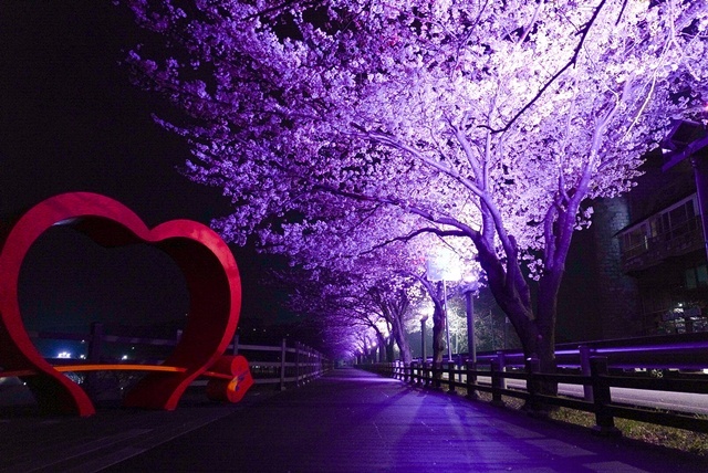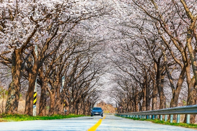 먼저 근남면 성류굴로 향하는 길과 망양정 방면 보행자 데크길은 벚꽃 터널을 형성해 걷는 이들에게 봄의 정취를 한껏 선사한다. 흐드러지게 핀 벚꽃이 데크를 따라 장관을 이루며 드라이브와 산책을 동시에 즐기기에 제격이다. 특히 야간에는 형형색색의 화려한 조명이 벚꽃을 은은하게 비추며 낮과는 또 다른 낭만적인 분위기를 자아낸다.