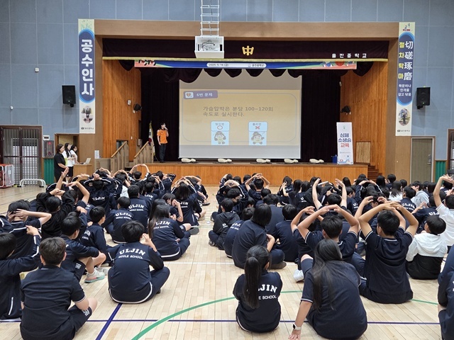 울진군은 학생들과 교직원을 대상으로 직접 찾아가는 심폐소생술 교육을 운영한다.
