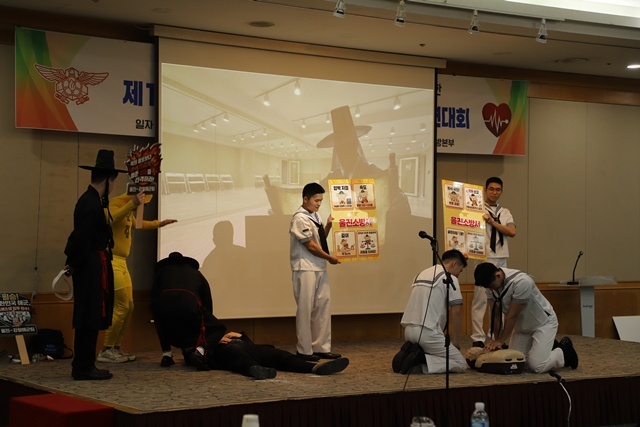 참가팀들은 심정지 상황을 가정한 8분 이내 상황극을 통해 심폐소생술(CPR)과 자동심장충격기(AED) 사용 능력을 종합적으로 평가받았다.