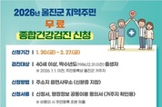 울진군은 한국수력원자력(주)의 지원을 받아 2025년에 이어 2026년에도 지역주민을 대상으로 종합건강검진을 실시한다. 이번 건강검진은 울진군 인구의 약 10%에 해당하는 4,630명을 대상으로 하며, 신청 기간은 1월 30일부터 2월 27일까지다. 신청대상은 2026년 1월 1일 이전부터 주민등록상 울진군에 거주 중인 군민 가운데 40세 이상(1986년 12월 31일 이전 출생자) 짝수년도 출생자다. 검진은 울진군의료원, 강릉아산병원, 포항성모병원에서 진행되며 검진 항목은 25종 80여 개 항목으로 국가암검진과 병행하여 실시한다. 검진을 희망하는 군민은 신분증을 지참하여 2월 말까지 주소지 읍면 사무소에 신청하면 된다. 신청서류는 신청서와 거주지 확인용(행정정보공동이용사전)동의서이며, 비동의시 주민등록초본을 제출해야 한다. 군은 2월 말까지 대상자 신청이 완료되면 3월 초에 한수원 지원 종합검진 미수검자, 고령자, 취약계층 순서로 대상자를 선정한 후 주민과 협약병원에 통보할 예정이다. 건강검진은 3월 16일부터 연말까지 진행된다. 울진군 관계자는 “많은 울진군민이 종합건강검진으로 질병을 조기발견하여 평생건강을 유지하는 기회가 되기를 바란다”며 “군민의 건강